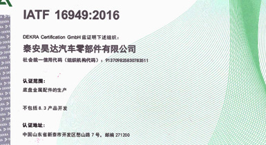 泰安昊達(dá)汽車零部件有限公司位于新泰市經(jīng)濟開發(fā)區(qū)嶅山路7號,公司成立于2011年,是一家生產(chǎn)中、重型卡車底盤鑄鍛件、焊接件、發(fā)動機配件的專業(yè)廠家,廠區(qū)占地面積101畝,2018年建設(shè)年產(chǎn)300萬件汽車零部件項目,項目總投資3.16億元,總建筑面積3.6萬平方米,是新泰市汽車裝配產(chǎn)業(yè)鏈的重點項目、2018年、2019年泰安重點項目,現(xiàn)已建設(shè)完畢,于2019年1月1日正式投入使用,設(shè)備新上覆膜砂自動化鑄造生產(chǎn)線1條、熱模鍛生產(chǎn)線6條、自動化焊接生產(chǎn)線10條、CNC加工設(shè)備200余臺套。 主要產(chǎn)品:中、重卡車底盤配件、轉(zhuǎn)向配件、中后橋氣室支架總成、中后橋配件、前橋轉(zhuǎn)向節(jié)臂、焊接配件、發(fā)動機配件。產(chǎn)品主要銷往中國重汽集團(tuán)、市場份額約50%,位居行業(yè)鑄件產(chǎn)品前三。 公司擁有IATF16949:2016國際標(biāo)準(zhǔn)質(zhì)量管理體系認(rèn)證,擁有實 ......
